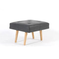 デザイナーレザー張りのボタン付きスクエアスツール(黒色)と素朴な木製脚
