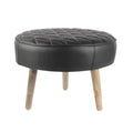 Designer Leather Upholstery round stool in black color with rustic wooden Legs
